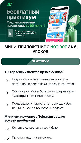 Лендинг и интернет-магазин, чат-бот и рассылка, клуб по подписке, платформа для курсов, аналитика трафика — теперь это всё делает MiniApp от Notibot.